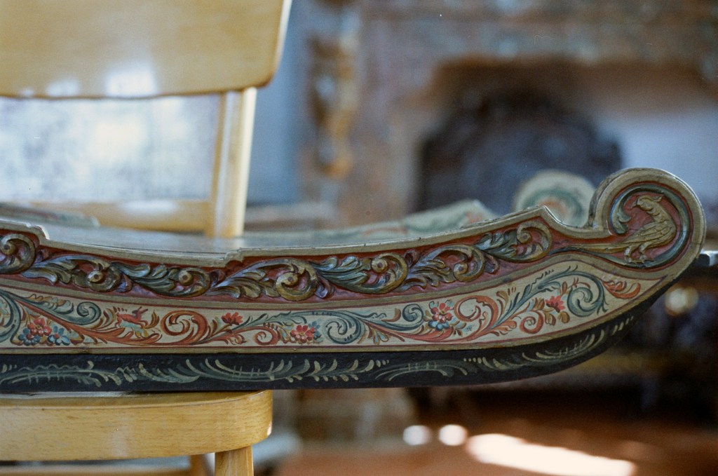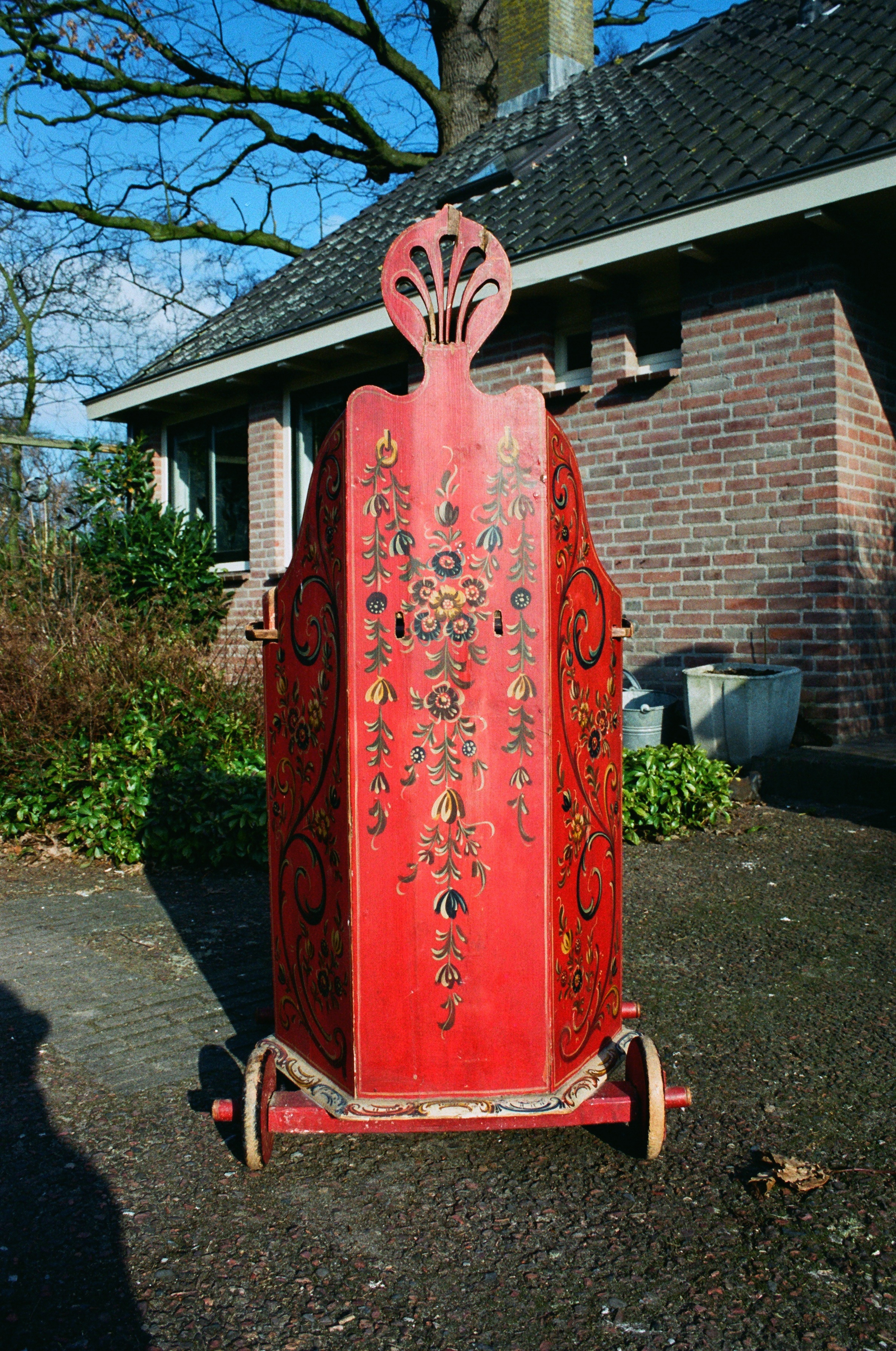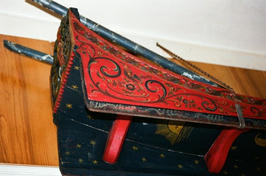 Later painted by Feike Kooy. The sun, moon and stars are drawn to the bottom of the sled because it was stored from the ceiling and not used.