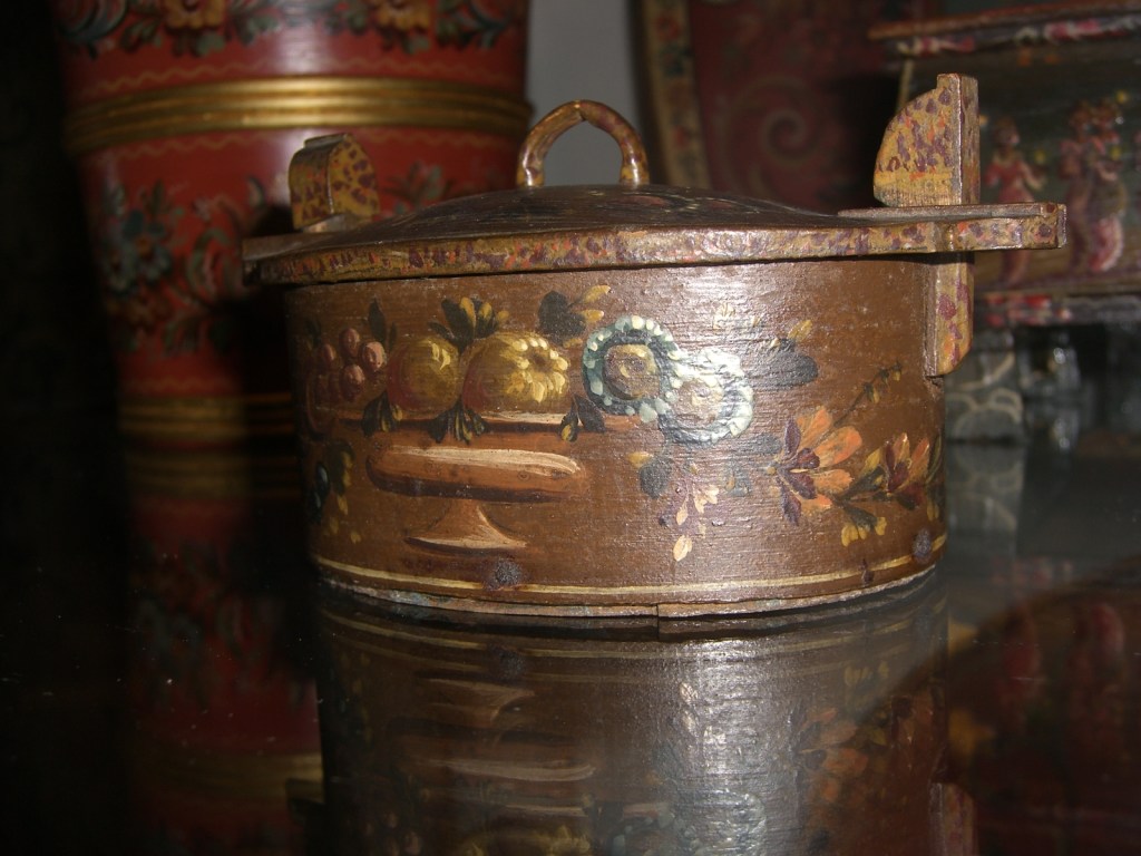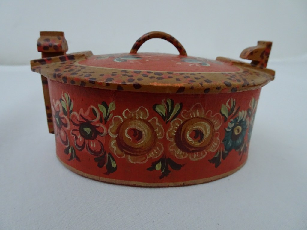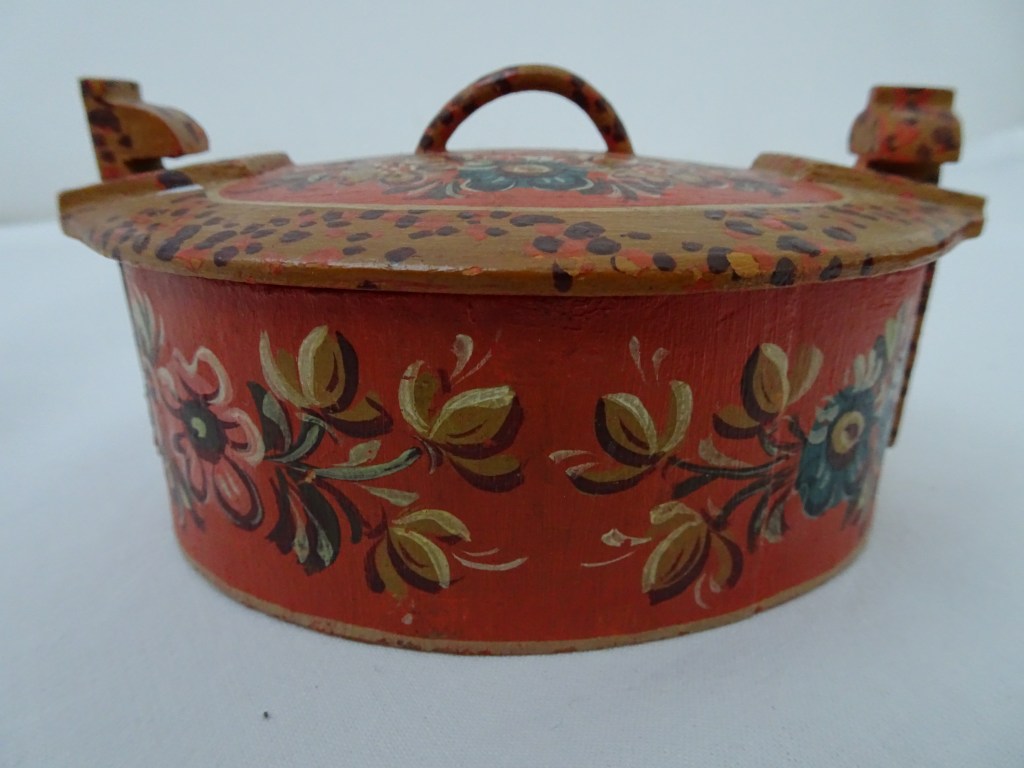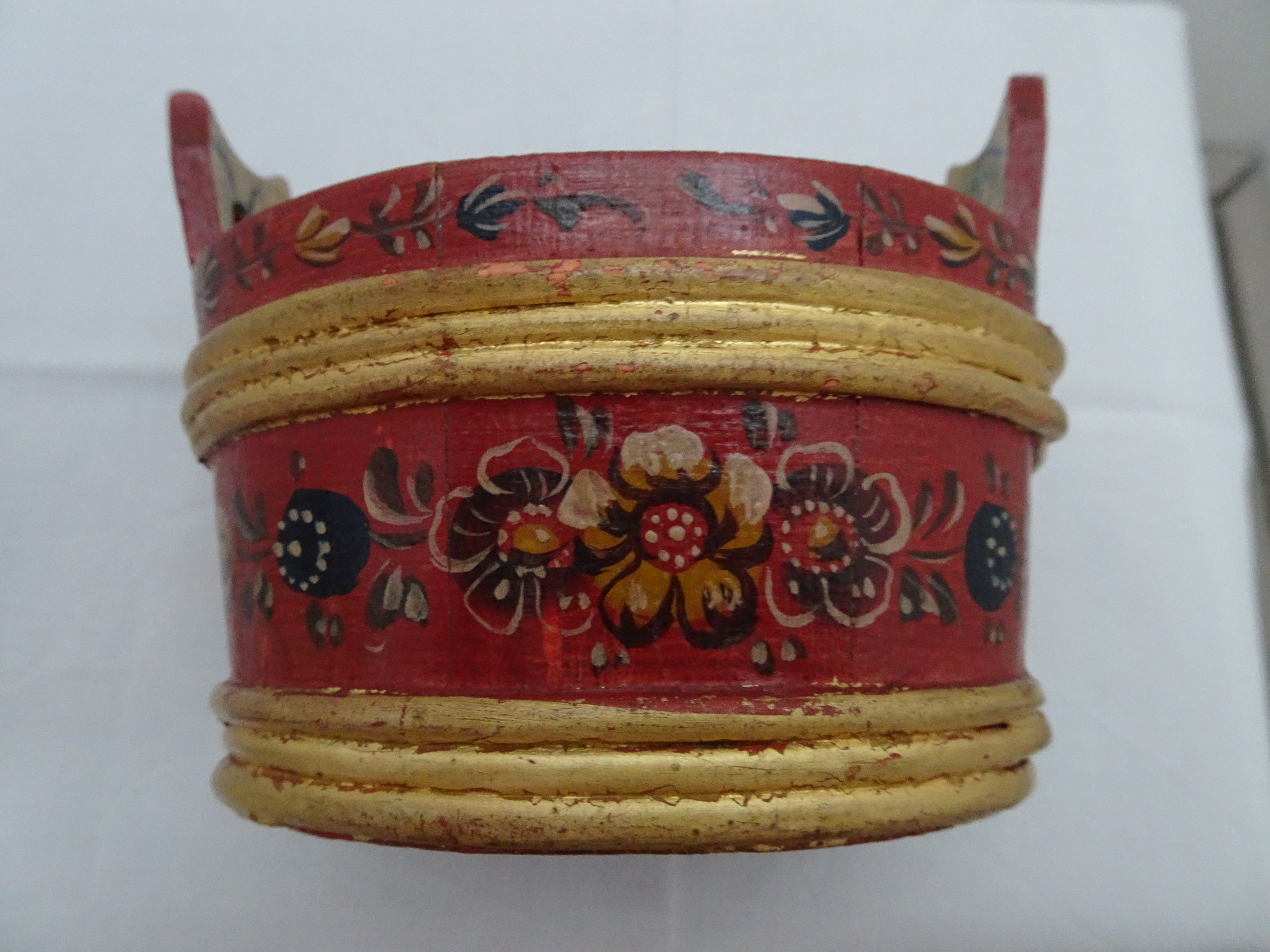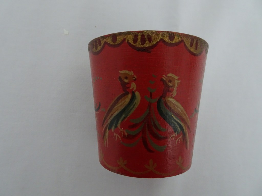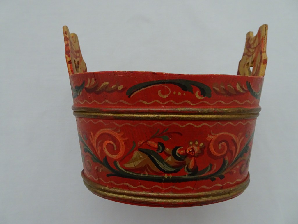 Tobbertje Tub 桶 桶 (浴缸) 19x13cm. H 13cm. By Ypma Tobbetjes zijn in de 18e eeuw veelvuldig in Hindeloopen beschilderd. Om tobbetjes heen zitten wilgentenen om ze goed bij elkaar houden. Het deksel heeft een speciaal model, voorzien van een gemarmerd motief op een donkerblauwe ondergrond. Tubs were frequently painted in Hindeloopen in the 18th century, Tubs have straps, which made of the branches of willows, to hold the tub well together. The lid has a special model with marbled design on a dark blue background. 桶は18世紀にヒンデローペンで頻繁にペイントされました。桶をまとめるたがは柳の枝でできています。蓋の取っ手は独特の形で大理石模様が施されています。 浴盆經常在18世紀在欣德洛彭(Hindeloopen)塗漆,浴缸有由柳樹枝條製成的帶子,可以很好地將浴缸固定在一起。 蓋子有一個特殊的模型與深藍色背景上的大理石設計。