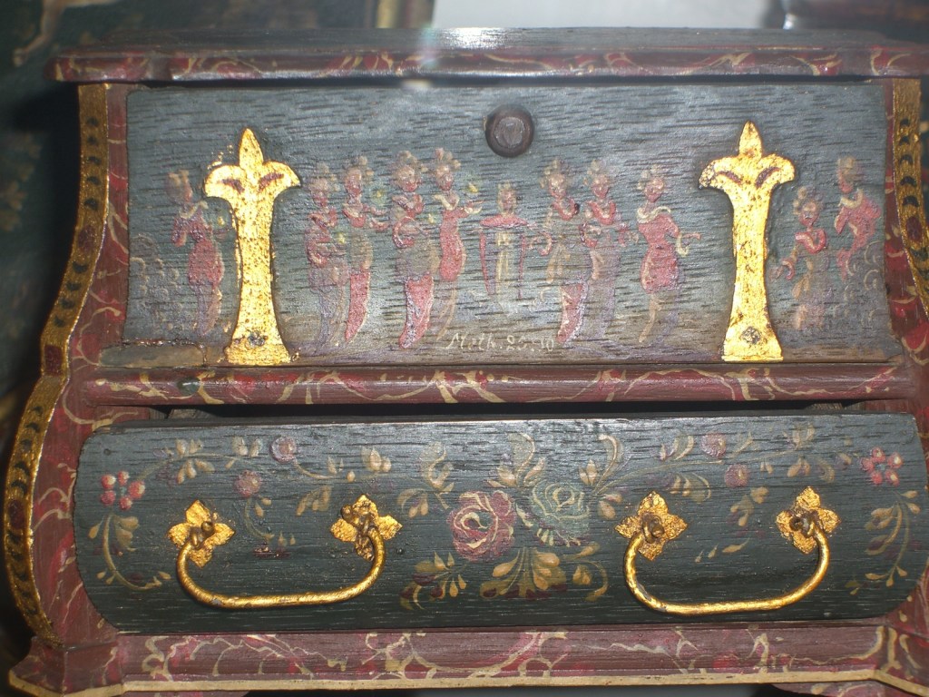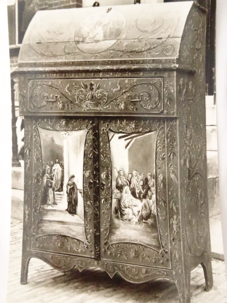 1887年、レーワーデンでペイント家具の博覧会が催されました。ヒンダローペン絵画の再発見となり、人々に見直されました。ローシェはわずか18歳で自作の裁縫箱にヒンダローペンを描き、金賞を獲得しました。