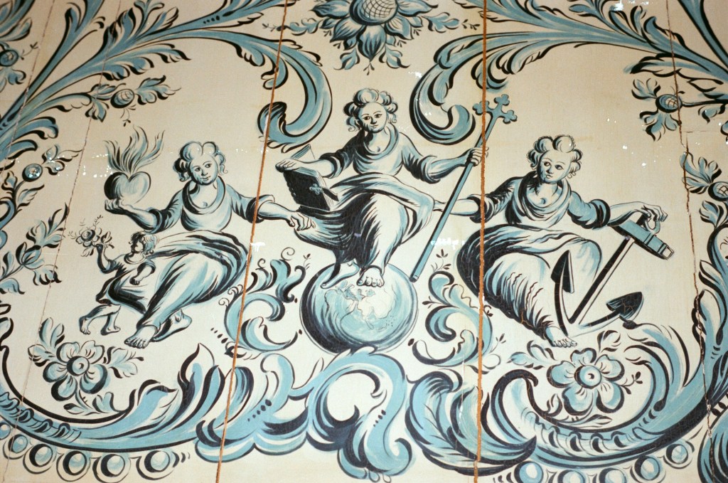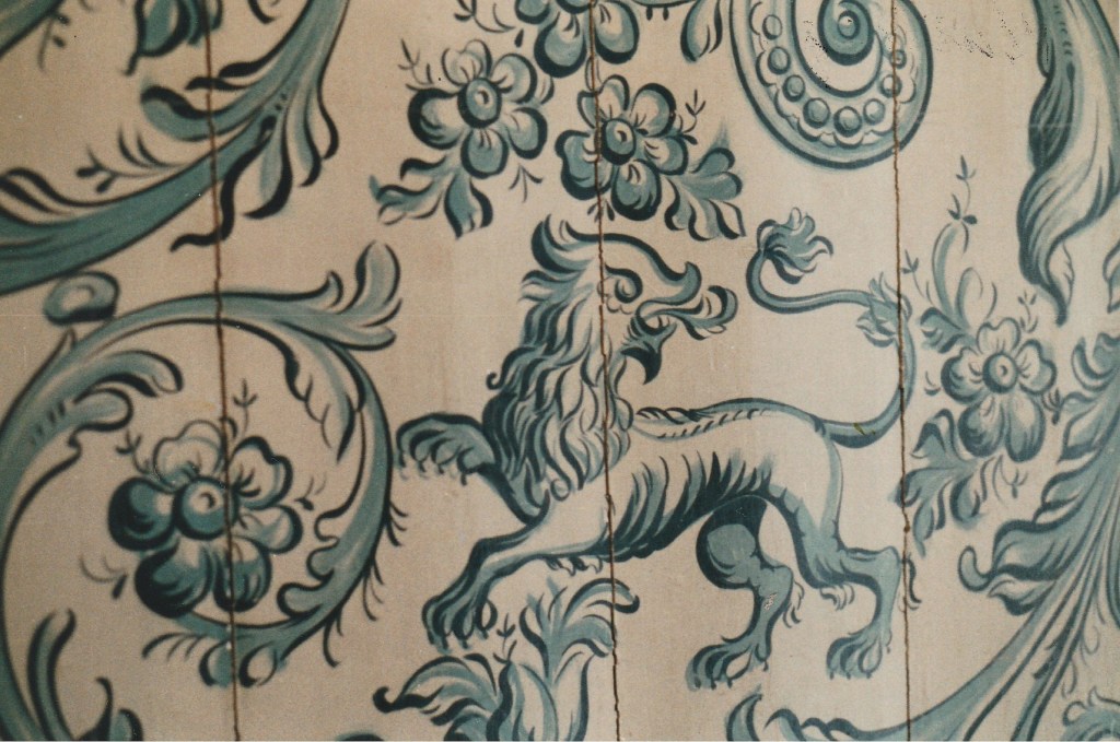 Later nog geschilderd door Feike Kooy. De zon, de maan en de steren worden op de bodem van de slee getrokken omdat deze van het plafond werd opgeslagen en niet werd gebruikt.