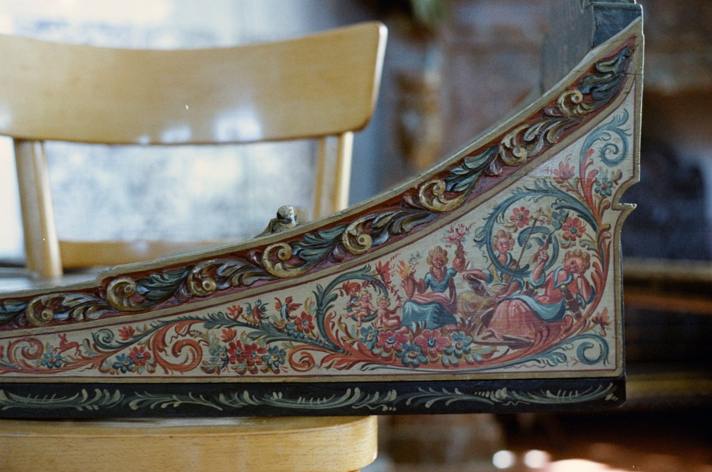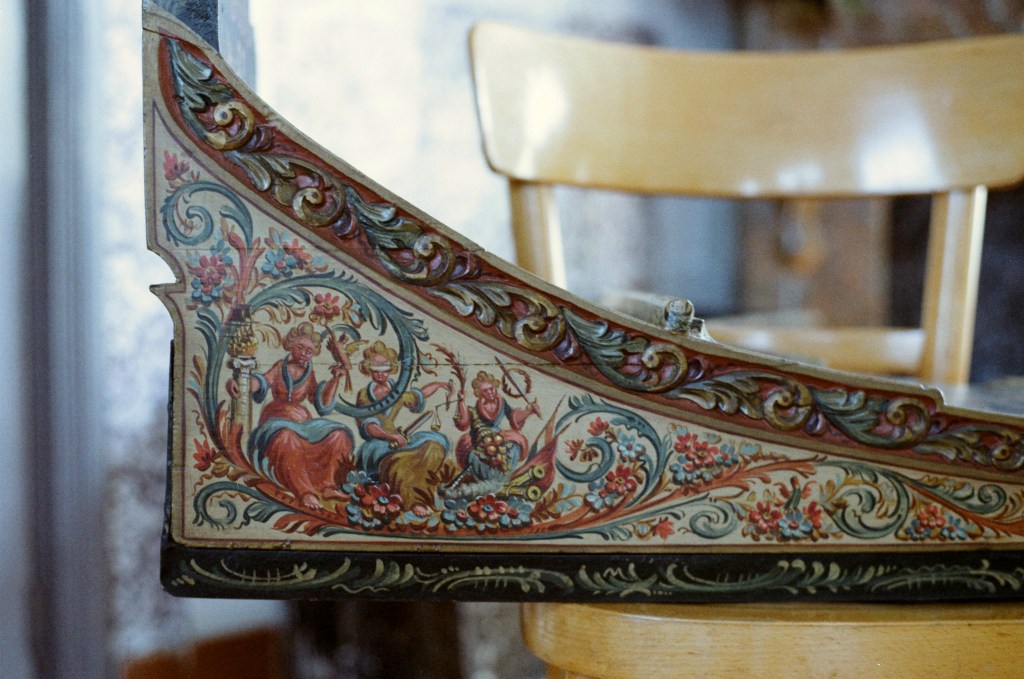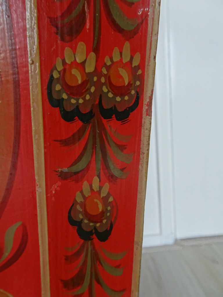 Als je goed naar Hindeloopen schilderkunst kijkt, valt op dat het met veel expressie en toewijding is aangebracht/ gemaakt. Het is krachtig in de beheersende lijn en dit wordt in de aanvullende versieringen en tot in de uiterste hoeken doorgevoerd. When you take a closer look at Hindeloopen folk art, it strikes you how the applied decorations are painted with great expression and dedication. It is firm in the controlling line , the additional decorations and all the way into every angle. ヒンデローぺンに近づき、よく見ると表現力豊かなホスピタリテイーと醸し出された暖かな愛を感じます。それは 強くコントロールされ、ラインに補充されたオーナメントの隅々にまで至ります。 当你看到欣德鲁本时,每个人都会感受到一种富有表现力的临终关怀和温暖的爱。它受到强烈控制并延伸到装饰线的每个角落。