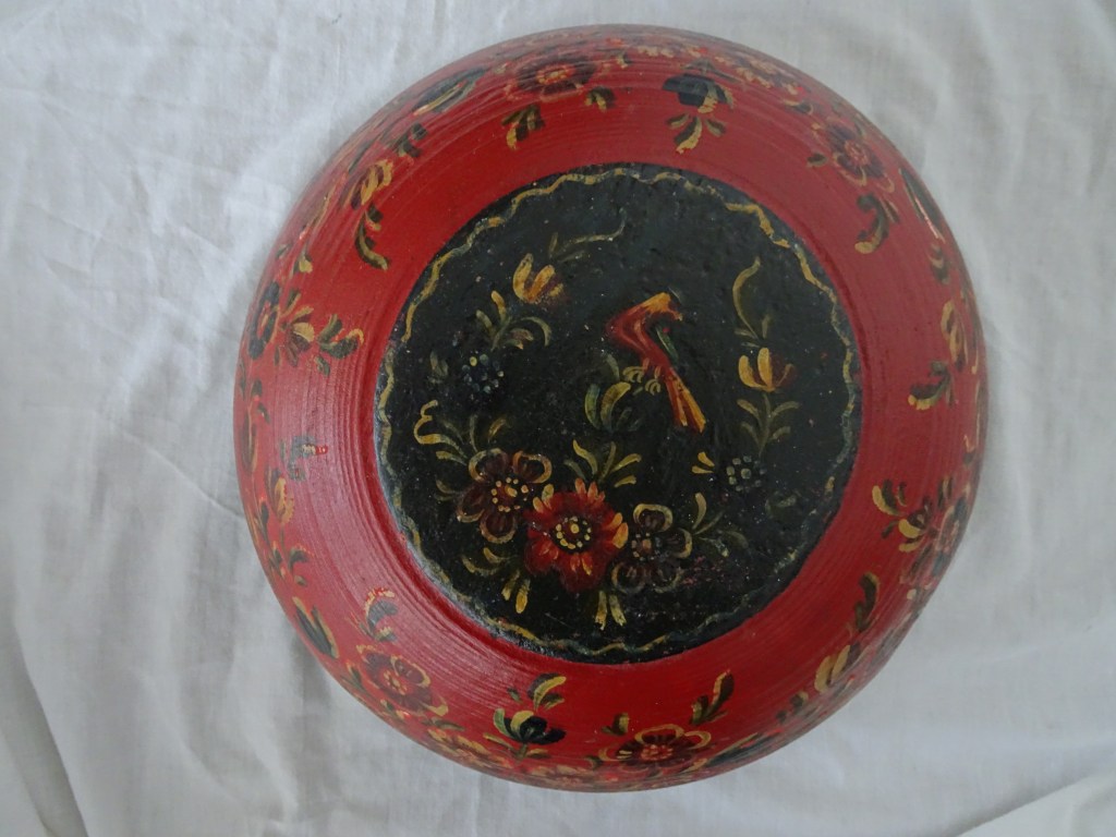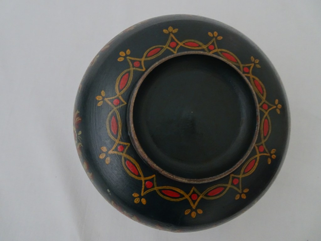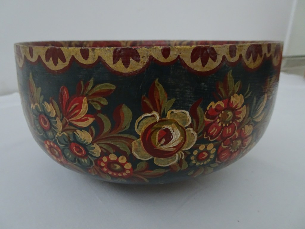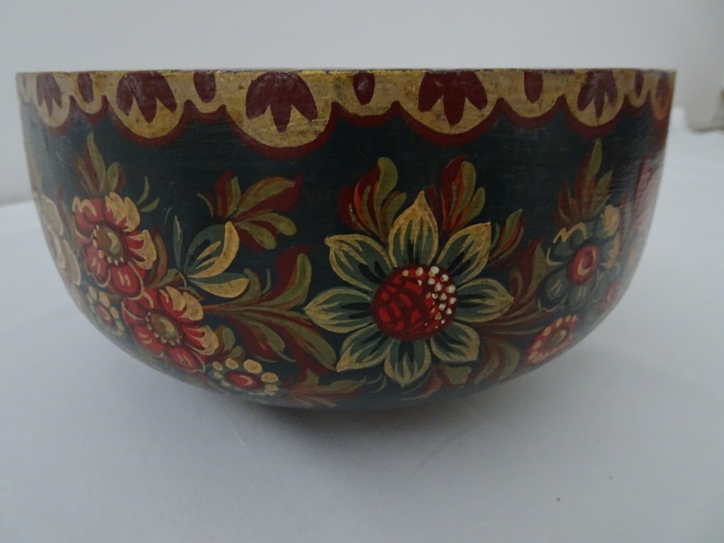 Kom Bowl 鉢 碗 Binnen kant is donker blauw en verbrand met cigaret. Inside is dark blue and burned with cigarette.内側はダークブルー、タバコの焦げ跡があります。 内部为深蓝色,并用香烟燃烧。 In het begin heeft Huttinga met Roosje style beschilderd. Later heeft hij oud Hindeloopen bestudeerd vooral in 18e eeuw, dan eigen style ontdekt.