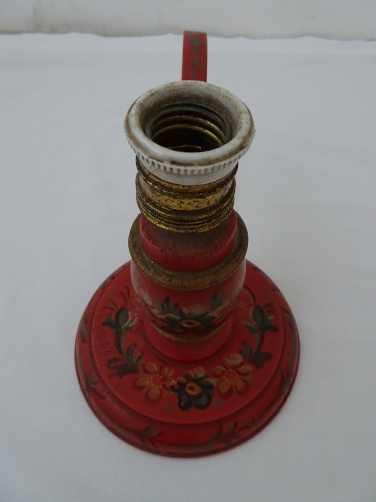 带有铜质插座,中间有花卉雕刻。除了连接分支的色带外,手柄上还有一条色带。背面是深蓝色大理石纹。