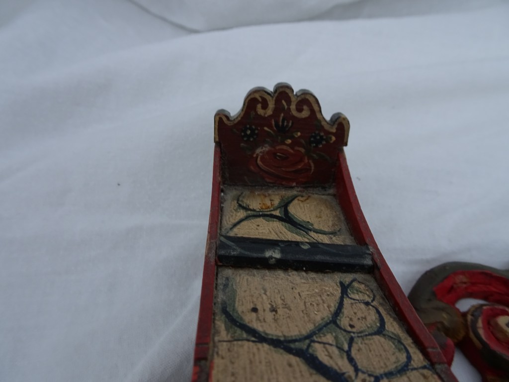 Sled 15 x 4 cm. H6cm. One roos is on the backrest.
